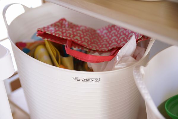 奥は子どもたちが遊びで使っているバッグ(袋?笑)類。