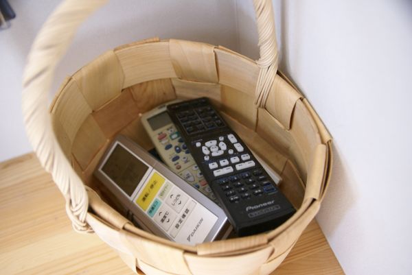 ↓この北欧風のかごの中に、我が家のリモコンが無造作に入っております。