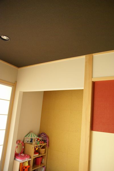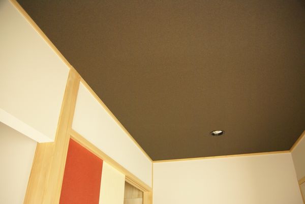 和室の天井は黒の珪藻土風クロス。