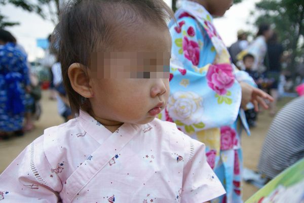 長女くう、今年の保育園での夏まつり(盆踊りみたいなものです)は浴衣着ました。