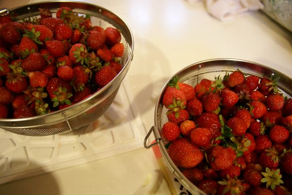 ジャムにしたいので、水で何度も洗ってヘタをとって……。