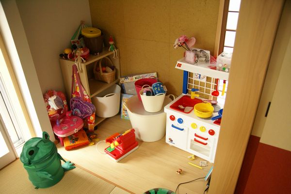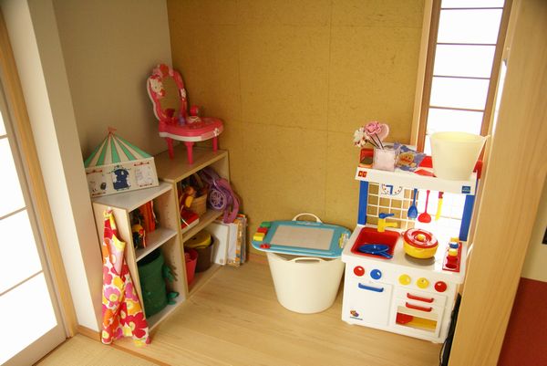 もちろん、遊ぶとなると和室どころかリビングに持ってきて遊ぶので、キッズスペースと言うかキッズ収納と言う感じがしっくりくるかもしれません(^^;