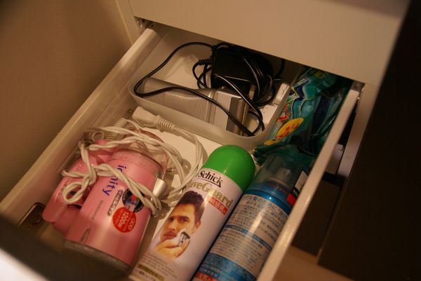 旦那のひげそり関係をまとめて、みなさんが入れているドライヤーを今まで私はここに入れたことがなかったんですが入れました。