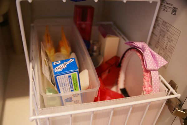 お化粧品関係は洗面でやらないので、キッチン横の納戸にいれてあります。