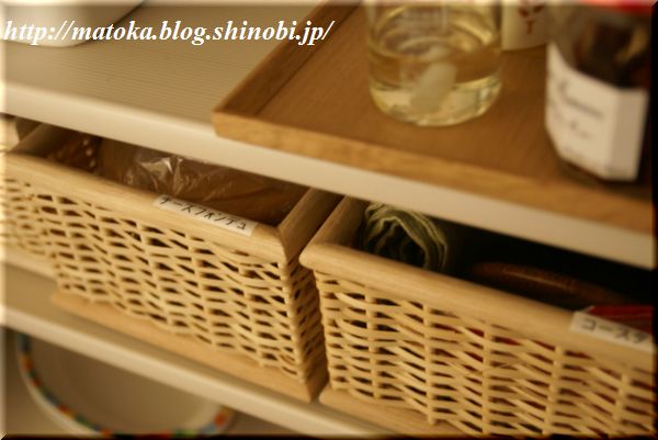 上の上(笑)の段にある無印のカゴでピッタリの高さにすると取り出しにくいということを学習していたので、下の段は取っ手のついたものにしようと思っていました。