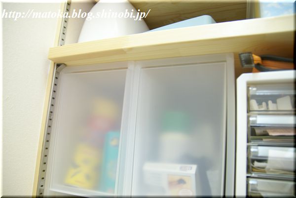 裁縫関係をここに入れるにしても、ミシンが別の場所にあるので(和室の押し入れ(笑))作業するとき、あっちこっち面倒くさいなと。