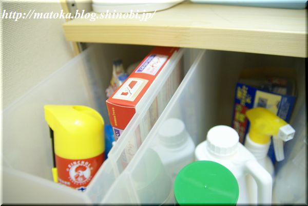 殺虫剤などのスプレー関係や、ファブリーズ、掃除関係のものを入れました。