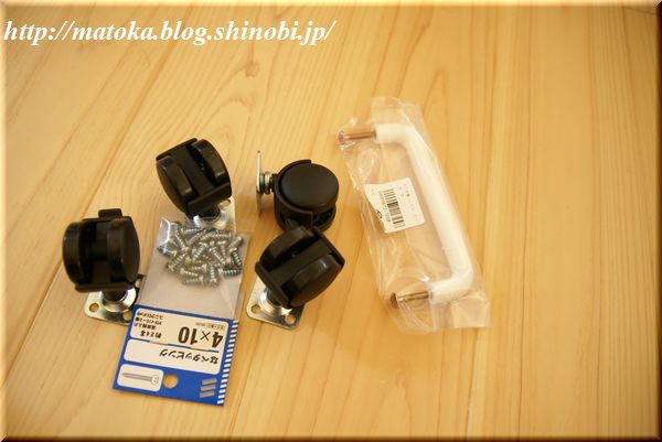 取り出しやすいように、取っ手とキャスターも購入。