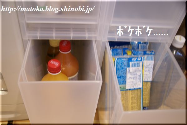 パスタのストックと、ジュース(いただきもの)のストック。お酢などの瓶もここに入れようと思います。