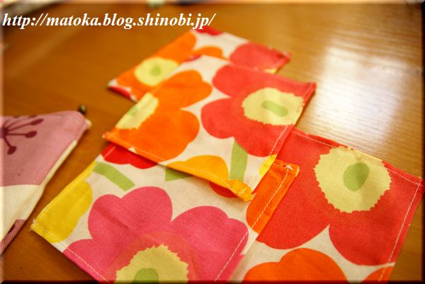 ついでに、くうに作ったマリメッコのエプロンで余った生地でコースターも作ってみました。